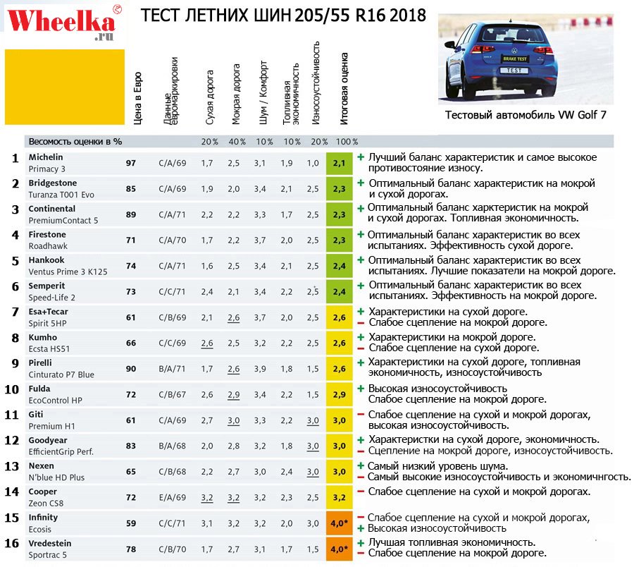 Первый тест летних шин 2019 года опубликовал немецкий автомобильный клуб ADAC. В этот раз для теста было отобрано 16 моделей актуальных летних автошин в размере 185/65 R15, предназначенных для компактных городских автомобилей. Для проведения испытаний команда ADAC отправилась в Италию. В качестве тестового автомобиля был выбран популярный VW Polo.