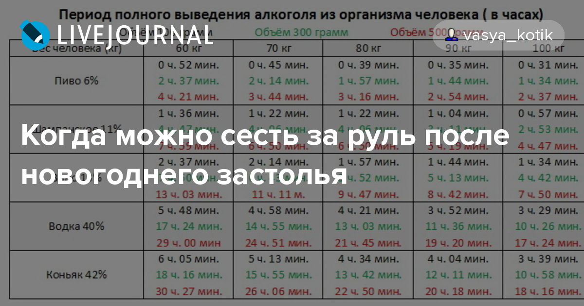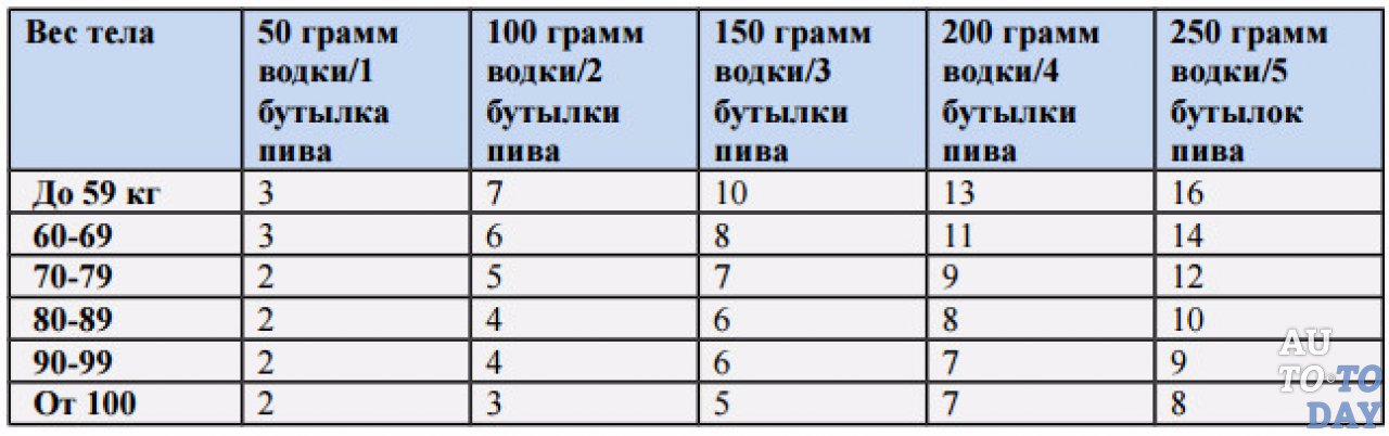 Даже опираясь на данные таблицы соотношения веса, выпитого горячительного и примерного времени его выведения.