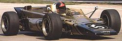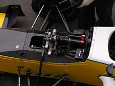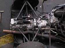 Полноприводный Cosworth F1, 1969 г.Привод, независимо от расположения двигателя, чаще всего делался задний, хотя в серии Индикар были попытки использования переднеприводных автомобилей (с целью снижения центра тяжести), а полный привод использовался и в Индикаре, и в Формуле 1. Переключение передач всегда ручное, хотя в последнее время повсеместное распространение получили разработанные ещё для Формулы 1 секвентальные полуавтоматические коробки в 1989 году[14], с переключением кнопками на руле и подрулевыми переключателями.