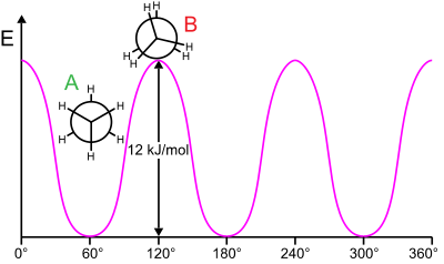 Энергии крайних и промежуточных конформаций принято представлять в виде циклических графиков, где по оси абсцисс отложен торсионный угол, а по оси ординат — энергия.