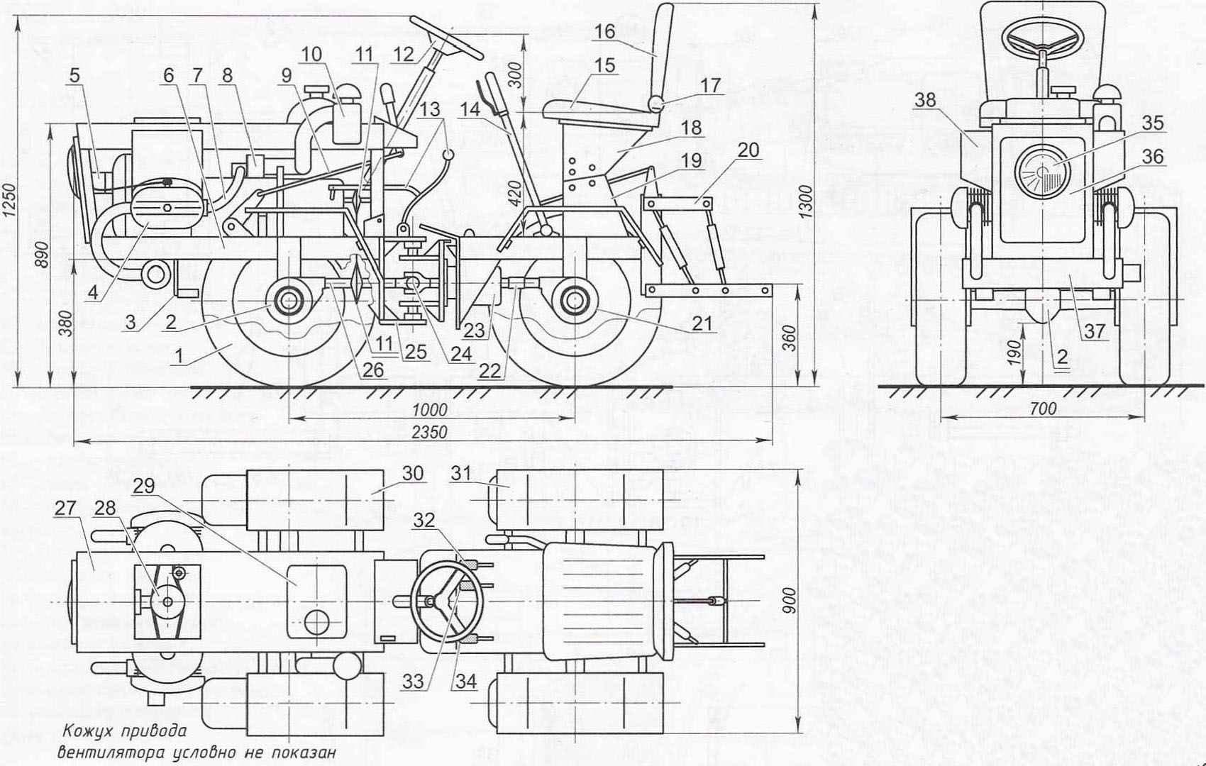 Прежде, чем начинать переломку мотоблока в пневмоход, обязательно нужно продумать схему превращения и составить подробные чертежи.