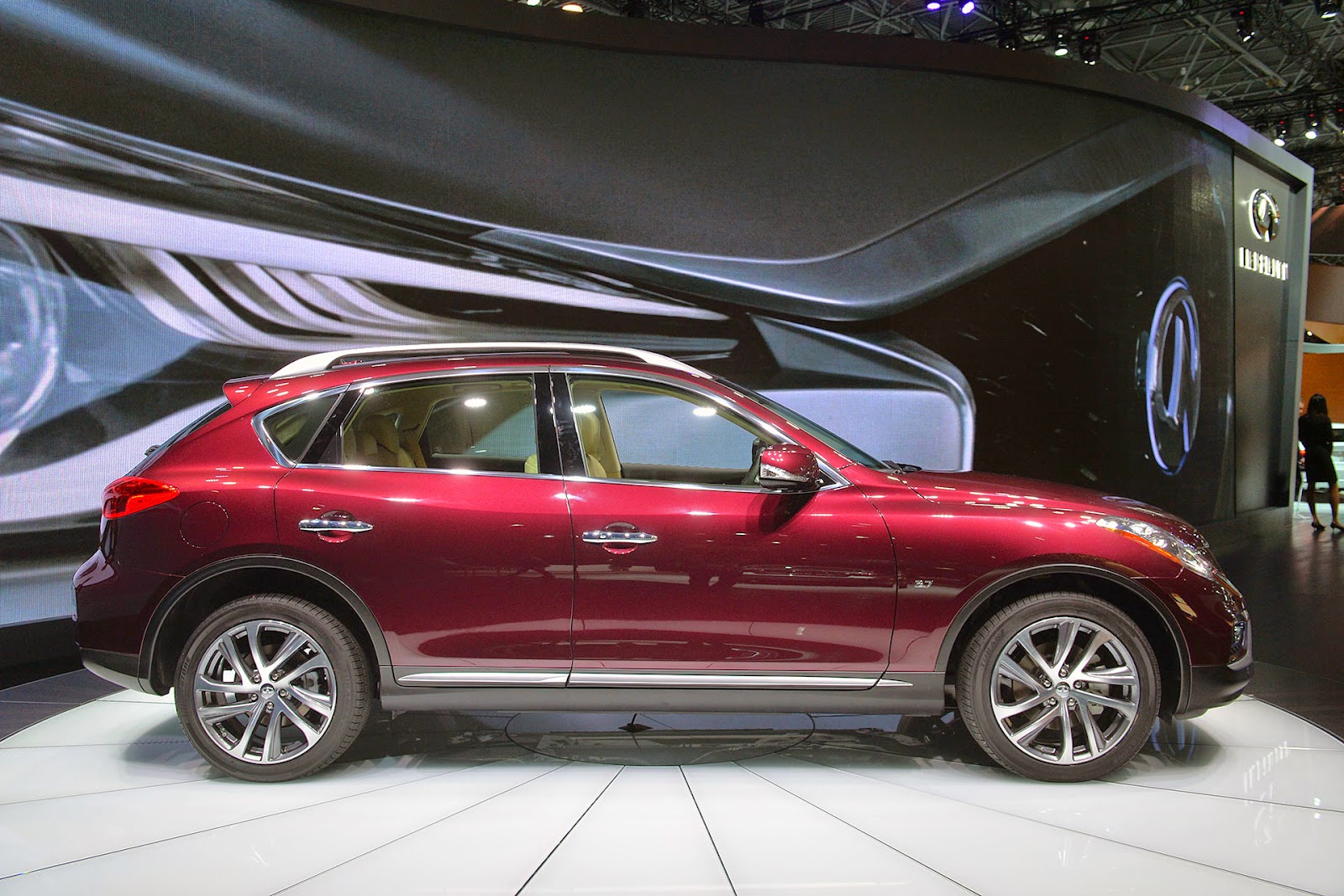 Передняя часть нового Инфинити Ку Икс 55 выполнена в стиле компании.