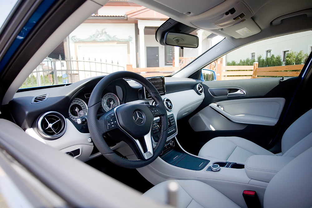Не всем пришлась по вкусу новая тенденция, появившаяся с седаном W222, но нельзя отрицать тот факт, что новый A-класс отныне внутри смотрится намного дороже предшественника. Немцы переделали чуть ли не всё. Слоёная передняя панель стала строже, но её удачно разбавляют металлизированные кругляши воздуховодов климатической установки с контурной подсветкой. Больше стало пространства (по сравнению с уходящей моделью): в районе плеч на первом и втором ряде прибавка составляет 9 и 22 мм, на уровне локтей — 35 и 36 мм соответственно, над головами — семь и восемь миллиметров (спереди и сзади).