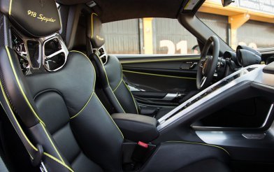 Несмотря на то, что в салоне новинки смогут разместиться только два пассажира, места там много. К тому же для владельцев автомобиля такого класса малое количество пассажирских кресел в салоне не должно быть недостатком. Все сиденья в Порше получили кожаную отделку, а спинки разработаны с эргономичным основанием, что делает поездки в модели максимально комфортными. Стоит отметить, что в более дорогом классе модели 918 Spyder салон обтянут еще более дорогим и престижным материалом. Для этого будущему владельцу необходимо будет заплатить всего 23 000 евро. Низкий клиренс не меняет видимость из салона.