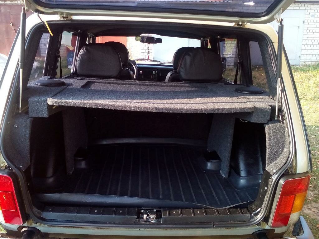 Объем багажного отделения нивы составляет внушительные 265 литров, которых вполне достаточно для перевозки любых грузов. Но если сложить заднее сиденье, то 265 литров магическим образом превращаются в ошеломительные 585 литров, в которые можно положить все необходимое. Например, такой объем будет полезен при езде на рыбалку или охоту.