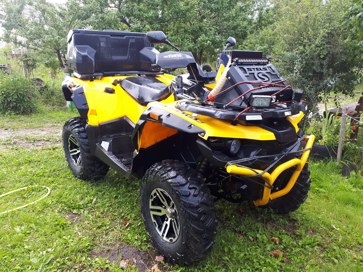 GK2V82MT — 650 куб.см GK2V92MW — 850 куб.см Двигатель ДВС GK2V91MW 4х-тактный, 2-циндровый, V-образный, жидкостного охлаждения; 800 куб.см. Максимальная мощность, л.с. (об.м.) 67 (6000) Максимальный крутящий момент, Нм (об.м.) 73 (5000) Система питания инжекторная, бензин с октановым числом не ниже 92 Система зажигания бесконтактная с электронным управлением (ECU) Трансмиссия клиноремённый вариатор (CVT ) (LHNR-Р) с режимом работы 2WD / 4WD / 4WD Lock Сцепление автоматическое Главная передача передние колёса — вал карданный, задние колёса — вал карданный Система запуска электростартер Подвеска передняя независимая, двухрычажная с пружинно-гидравлическими амортизаторами, ход 230 мм Подвеска задняя независимая независимая , двухрычажная с пружинно-гидравлическими амортизаторами, ход 207 мм Тормоз передний / задний дисковый с гидравлическим приводом / дисковый с гидравлическим приводом Емкость топливного бака 30 л.Шины передние / задние AT26 x 9 «-12» / AT26 x 10 «-12» Диски передние / задние легкосплавные Габаритные размеры / высота по седлу, мм2344х1228х1420 / 1000 Колесная база, мм 1530, клиренс не менее 310 Масса в снаряженном состоянии, кг 400 Дополнительная комплектация лебедка 4500 фунтов