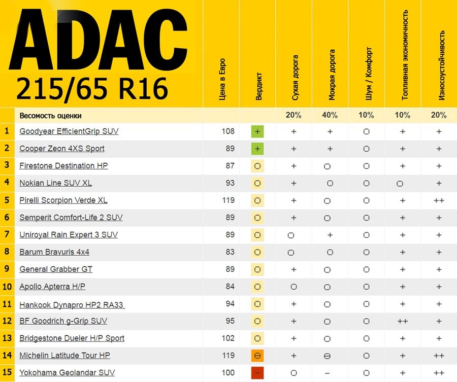 | * Эти объективные оценки рассчитываются на основе цены шины и результатов испытаний. | |||||||||||||||||